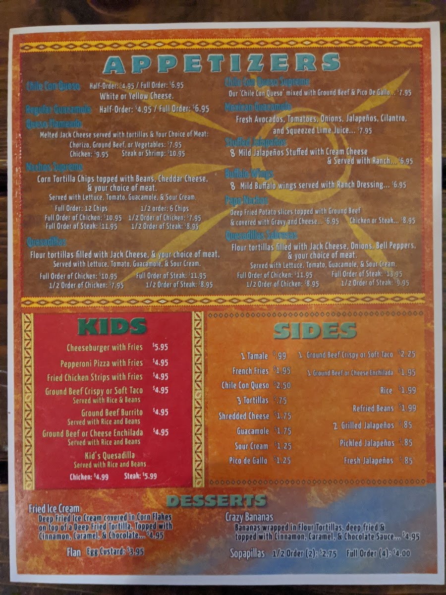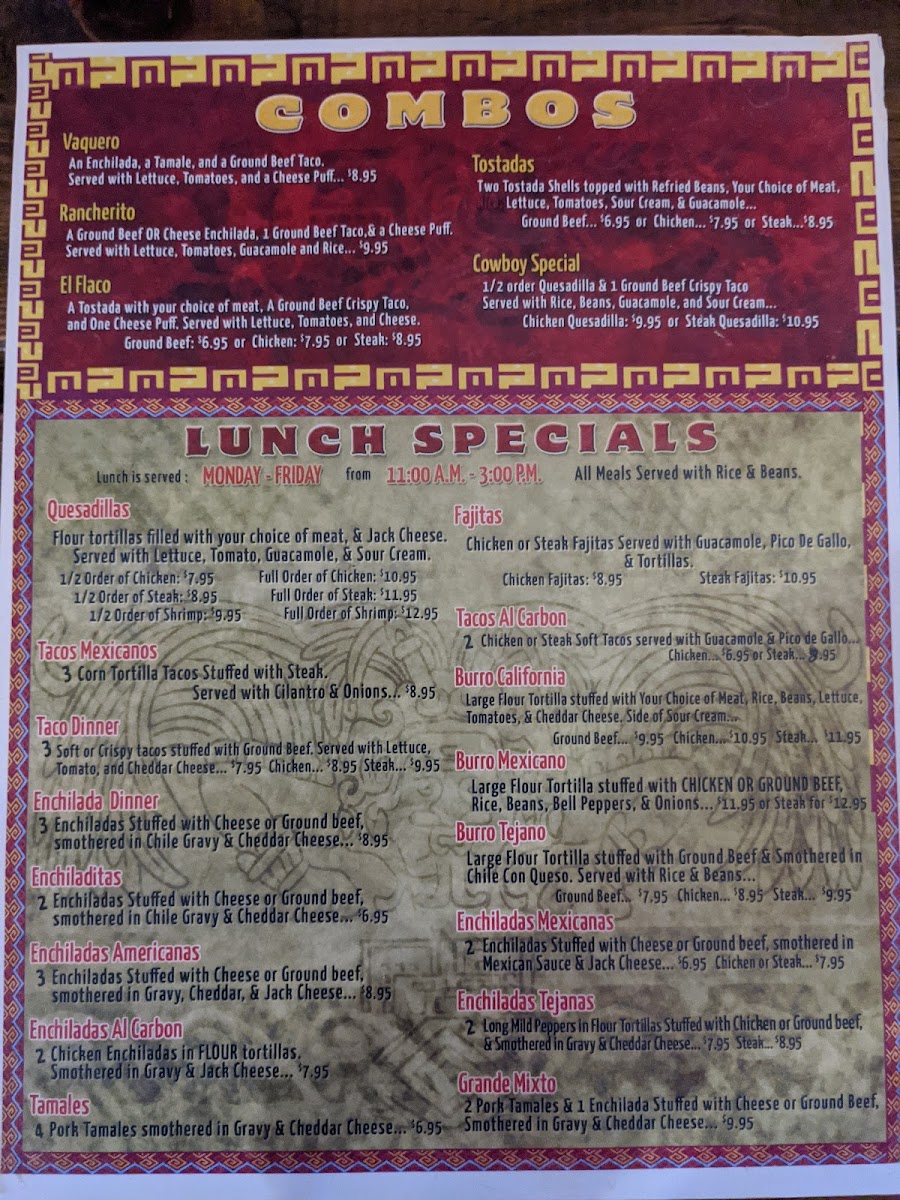 Mexico Lindo Menu